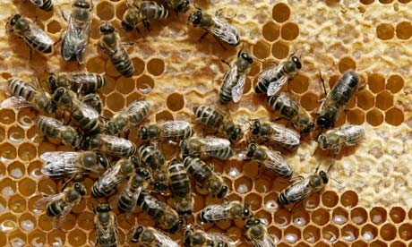 Honey bees on a honeycomb in Germany. A European court has ruled that honey which contains traces of pollen from genetically modified crops needs special authorisation before it can be sold. Photograph: Heribert Proepper/AP